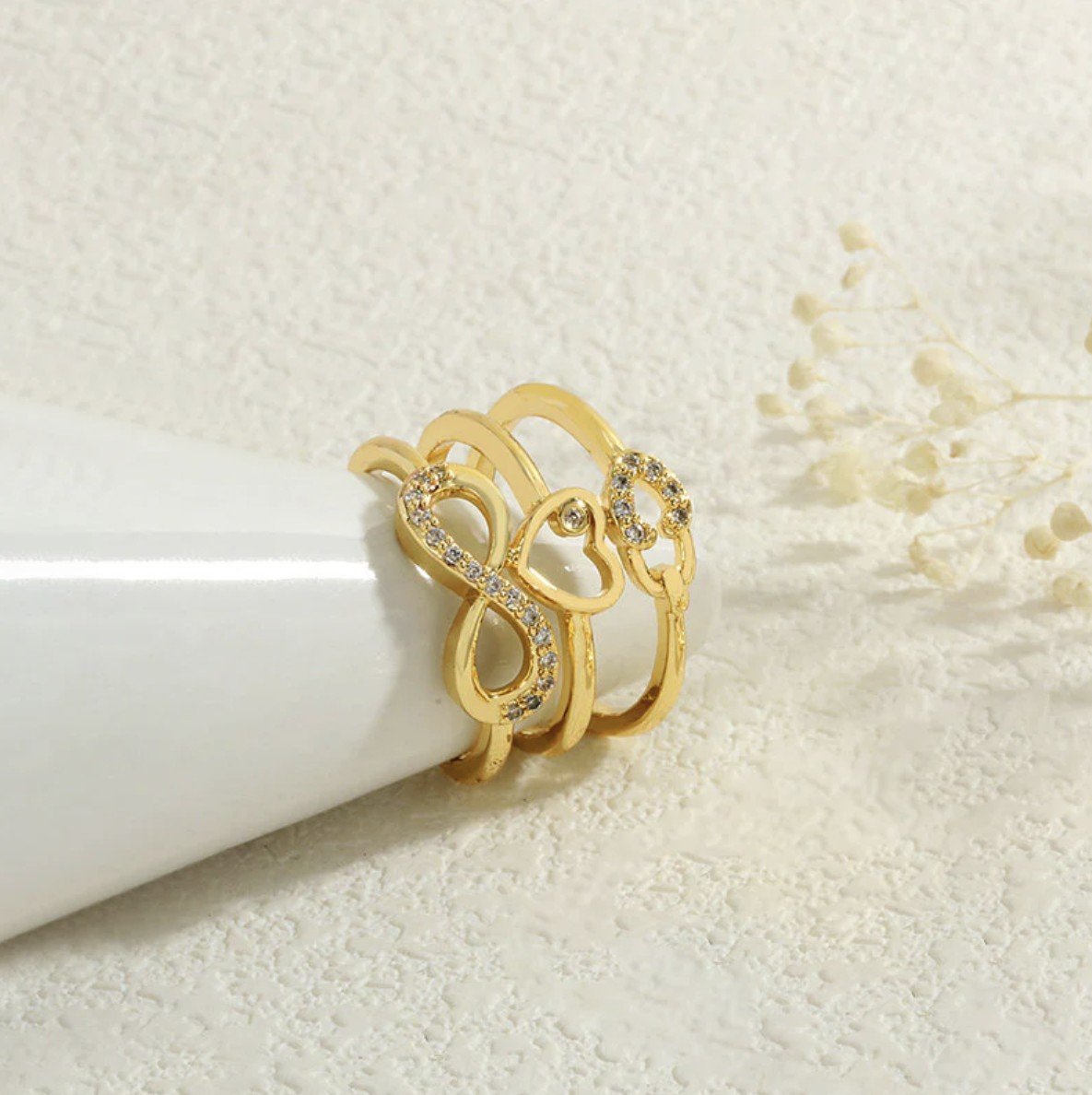 Symbolize everlasting love with our Infinity Heart Themed Ring, a delicate and meaningful addition to your jewelry collection. This elegant piece features a beautifully integrated infinity symbol and heart design, representing an unbreakable bond.