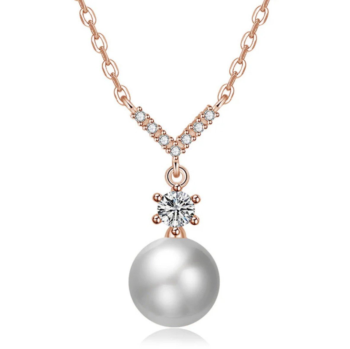The pearl is elegantly crowned with a precision-set American Diamond arrangement, adding a touch of brilliant sparkle to the design. Crafted with a Premium German Finish, the rose gold plating provides a warm, durable luster that resists fading. Hanging from a refined, lightweight chain, this “Onesize” pendant is designed to complement everything from professional attire to evening wear, making it a versatile staple for the modern woman.
